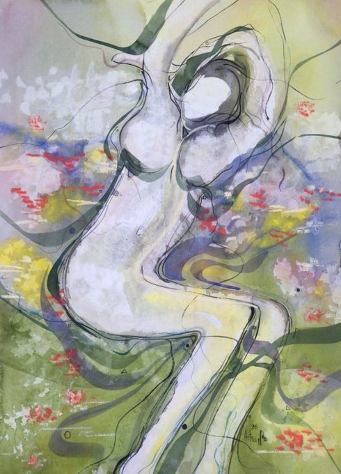 Arto Der Haroutunian 'Autumnal Reeds' 1985 30" x 22" Acrylic Was on Paper #abstractart #modernart #artoderharoutunian