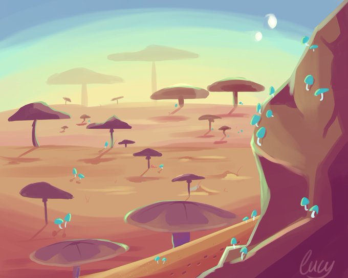 hey #screenshotsaturday !! here’s some shots from the end of year game my team and i are making, planet mush!! im a concept artist for it and drawing mushrooms has been so much fun