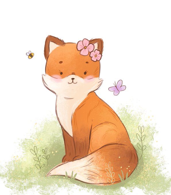 Just a little happy fox sketch 🌿🌼