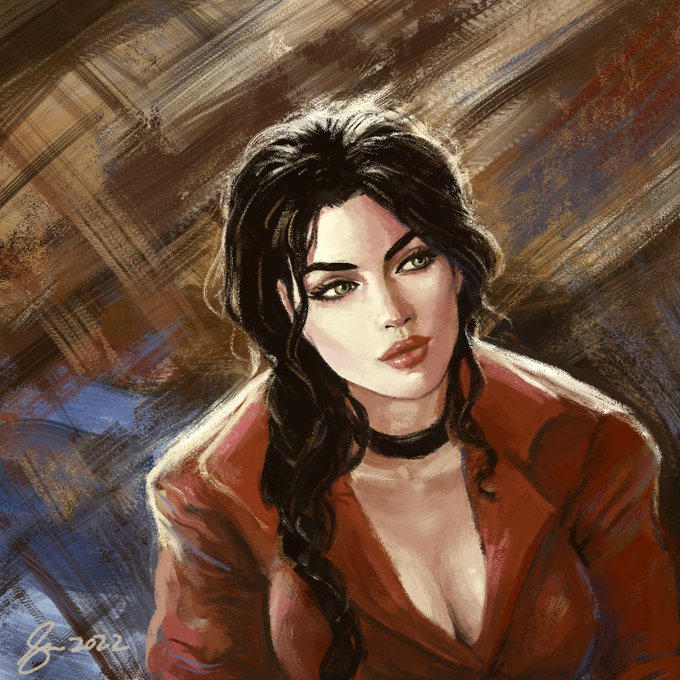 Happy New Year! First art of 2022. Trying a more traditional-looking painting style for a change. This is my OC Raven. This look of hers is inspired by her version in @PyrasTerran 's Astral Drift Universe, where she is a member of a death cult/terrorist group.