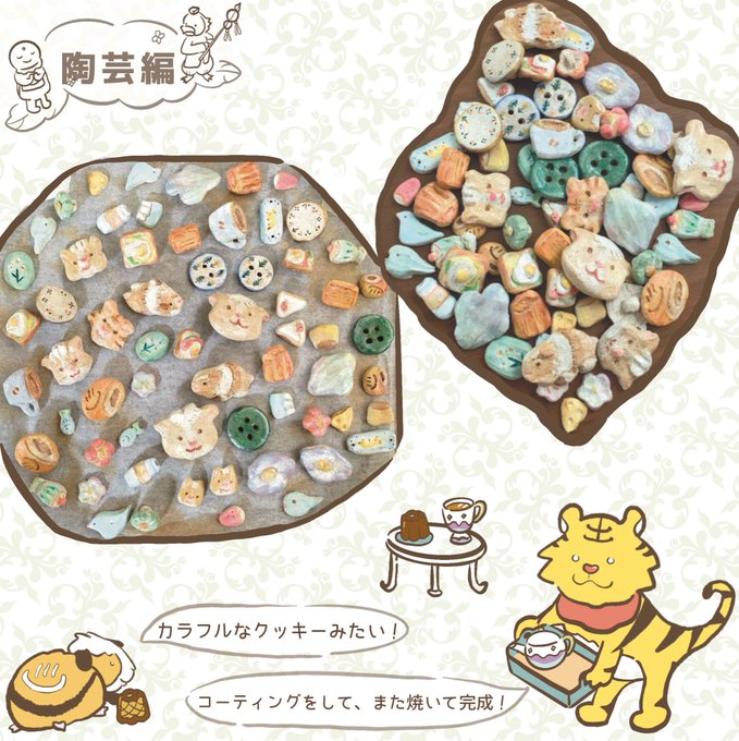 【焼き物編−6ー】 色を付け、コート剤を塗り焼いて完成💠 ヘアアクセサリーやブローチにしていきます♨️ 水と緑と動物好きな妻が表現する”木彫・粘土・レジン・刺繍・イラストなど”の作品と制作風景を紹介していきます🕊 #作品 #木彫 #粘土 #レジン #刺繍 #イラスト #ART #癒し #作品紹介 #美術 #工芸