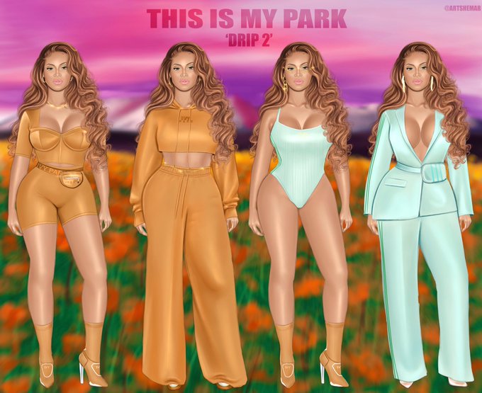 The similarities between my drawing I did a month and a half ago and Beys pics she released👀🖤😅. Am I reaching or do y’all think she might’ve peeped my art? #IvyParkXAdidas #IvyPark #Beyonce #ShéTAR