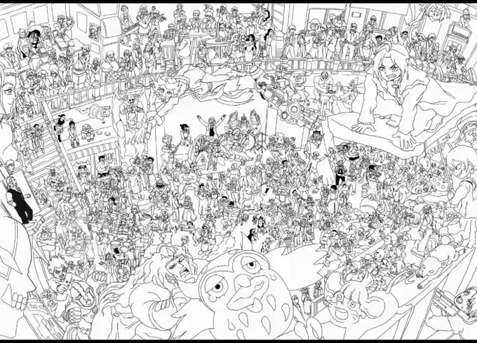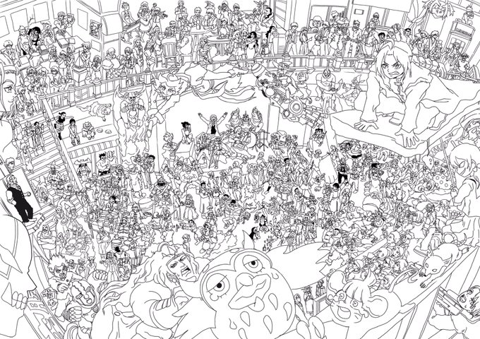 皆様おはようございます!!計画通りプカプカ浮いてきましたが、クソデカ集合絵が全然完成しなかったので、もう二、三日だけ沈まさせて頂きます!!線画は終わったので色塗りだけです…!色塗り…だけ…です!!頑張ってきます…!今回も8作品、何のキャラがいるか分かるかな!?それじゃおやすみ!!