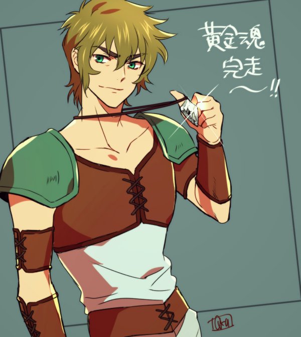 黄金魂完走記念にアイオリア。今度ちゃんと聖衣描きたいー!アイオリアめちゃくちゃ可愛かったよぉ