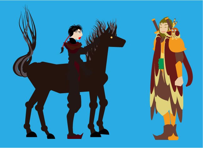 #魔法戦記アルスラーン 魔獣アズライールは自由に自分の大きさを変えることができ、鷹の姿で空を飛びダチョウの様になって地を駆ける。小さい姿は魔力の燃焼を抑えるための省エネ版