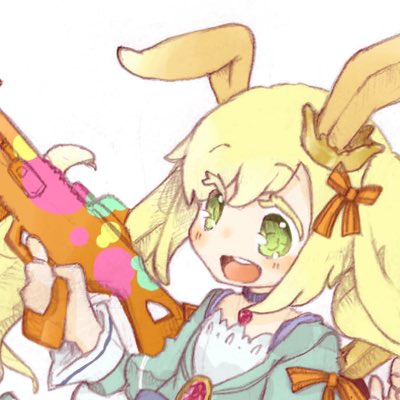 お絵描きとしてはゲームのアバターちゃんです。金髪碧眼ロリツインテうさ耳銃を持つ女の子(