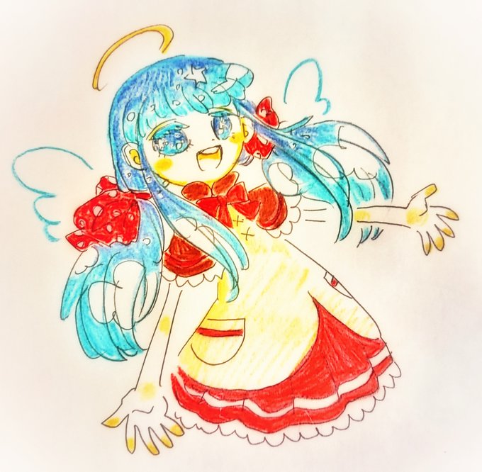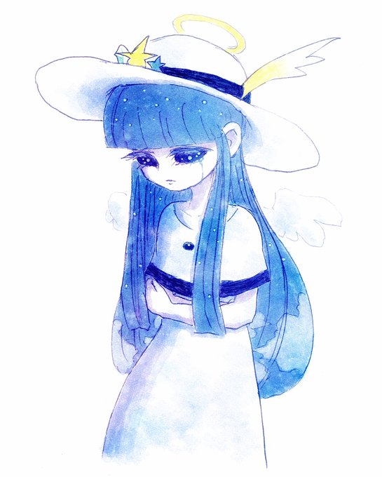 @NEZumi_0424 わ~~やばすぎる素敵企画が…!!よろしければ…! 天使になりかけの幽霊の女の子、メテアです 星空の瞳と、星空~青空のグラデーションの髪を持っていて、喋ることができないかわりに携帯型人工衛星のルテマをお供に連れており、ピピッガガーな感じで通訳してもらってる子です~