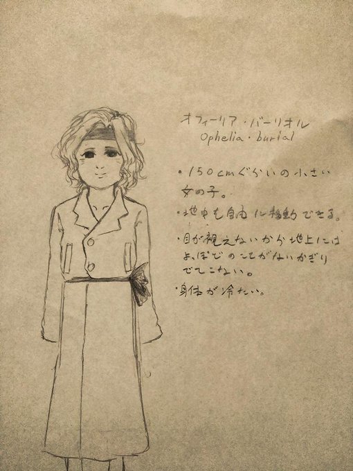 オフィーリア・バーリオル 『光を閉ざされた少女』 目が不自由な少女、地上に出ると日光で目が痛くなるので地底で暮らしている。 能力:地中を自由に動き回れる程度の能力