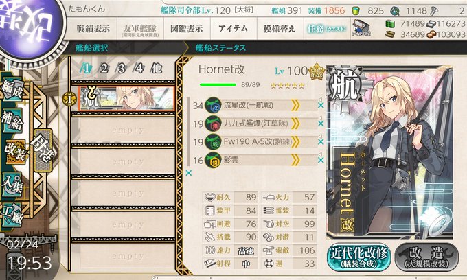 そんな最中ですが、どーん。ゴトランドとケッコンカッコカリ完了しました。 これで全体では102人目、軽巡(含む雷巡)では17人目となります。