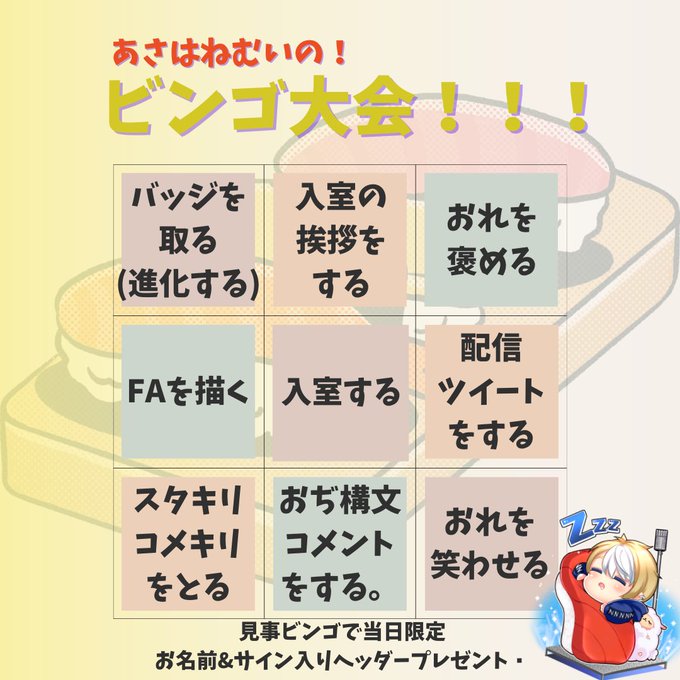 ビンゴしたらDMで画像に印つけて送ってね!