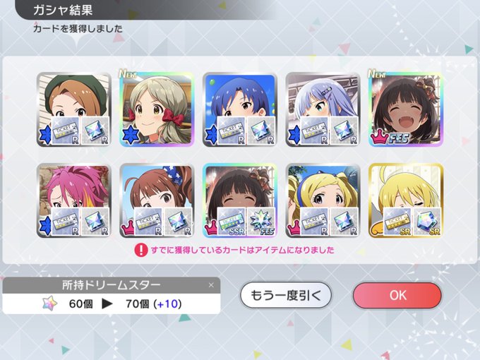 スカチケ買ってなきの10連したけど最低保証だった……さよなら茄子さん……