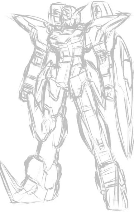 入浴前に一筆 下書きの段階では ラフでも良いかもと 思いましたが 清書が 苦手なんですよね ここから どうやって 描いて行くか いつものように シルエット出しするかもです 線の上から 線描くのって苦手なんですよね #ガンダムW #デスサイズ #イラスト