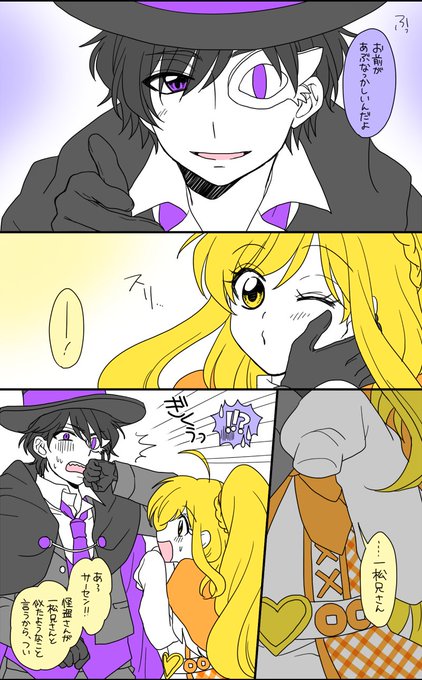 十四松♀=魔法少女クイックキャンディちゃん。一松は怪盗として現れてはキャンディを助けてる。一松はじゅし=キャンディなことは知ってるけど、じゅしは一松=怪盗だと知らない。…っていう感じで!リクエストありがとうございました😊