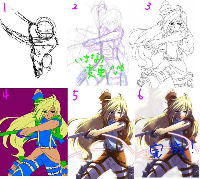 #このタグを見た人はラフ画とその完成絵を見せる ラフというか工程 何年も前のやつだけど 当時はPixiaでお絵かきしてました😊