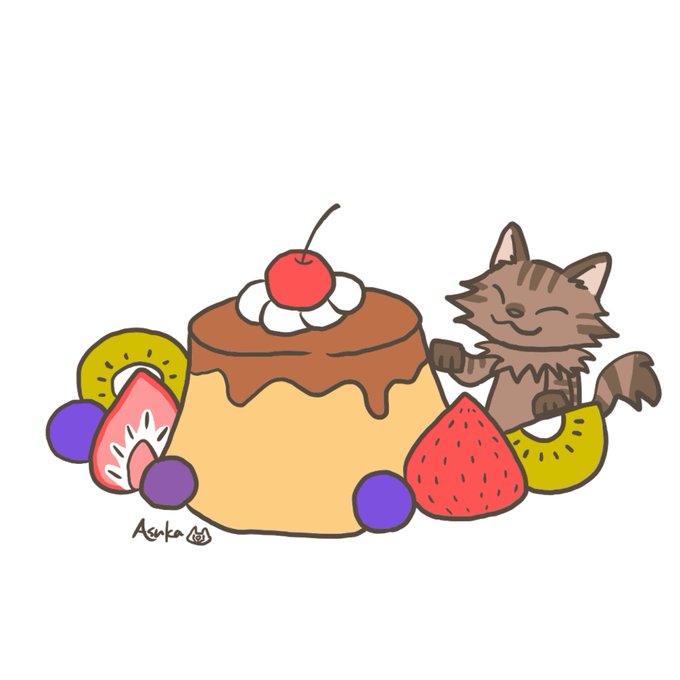 猫とプリンアラモード🍮 #イラスト #絵柄が好みって人がいればいいなぁ #ねこ