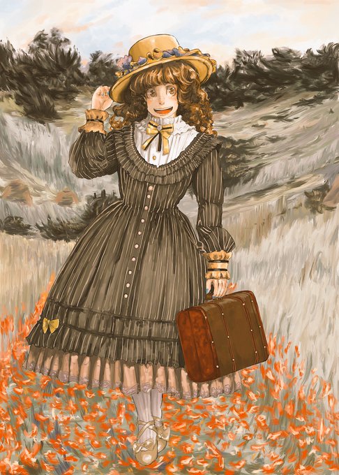 やっとでけた!😁✨ くぼ地のヒナゲシ畑とゴスロリ娘 (Poppy Field in a Hollow near Giverny) #クロード・モネ #claudemonet #絵描きさんと繋がりたい