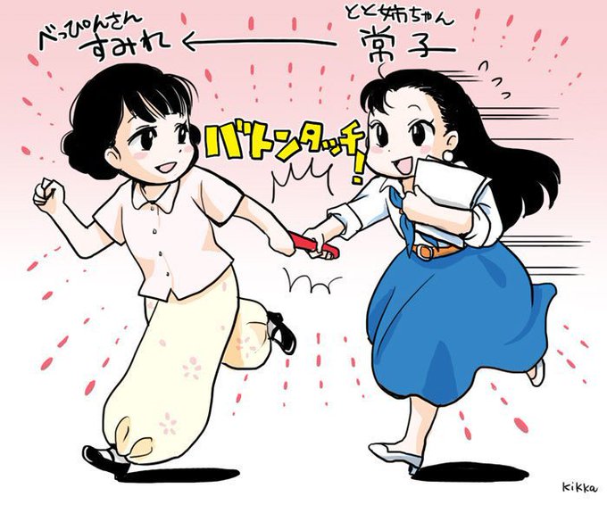 みね子から、てんに バトンタッチ!! #ひよっこ #ひよ絵 #わろてんか #わろ絵
