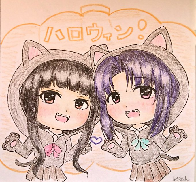 1日遅れちゃったけど、、、 #ブリヤントノワール でハロウィン~🎃 クロネコな翠ちゃんと千秋さんを描きました~!着ぐるみ系のコスも可愛くて好きです🐱 #黒川千秋 #水野翠