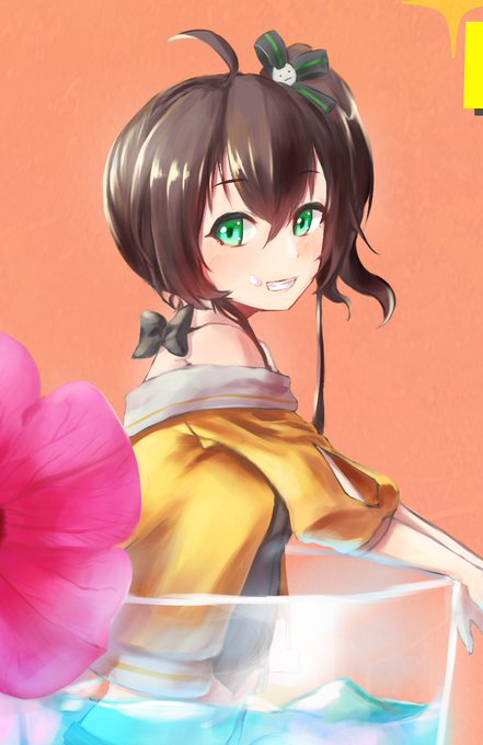 2万人おめでとうございます🌽🍵 たまにはポニーテールも…いいよね! #絵フブキ #すこん部