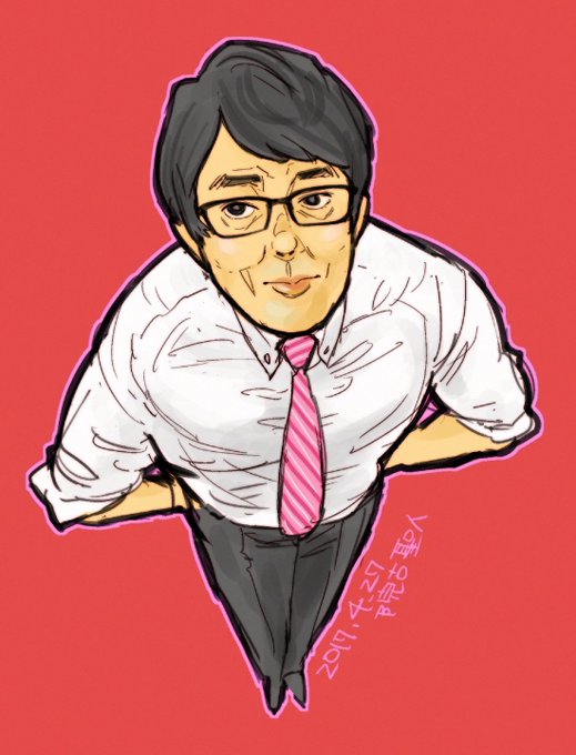 白いジャケットの高井君を描きました。