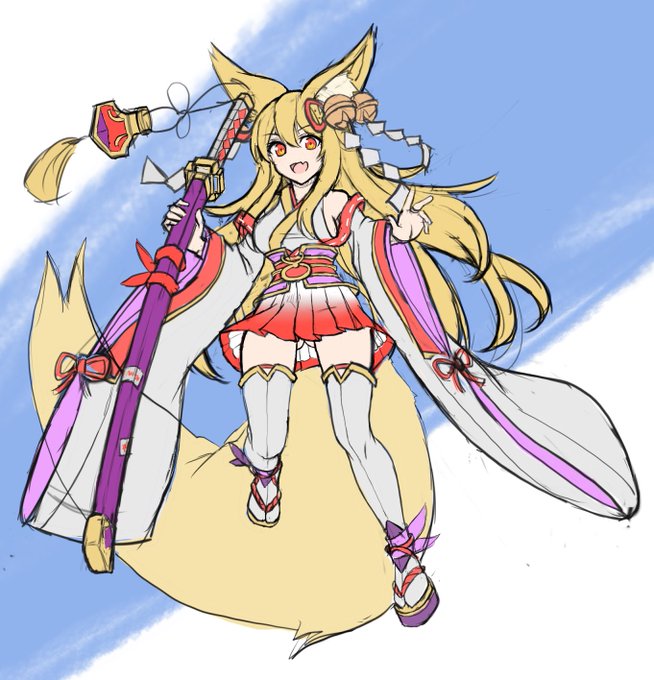 抜刀ポーズの小狐丸 線画しない方が修正とかはし易かった #あやらぶ絵巻