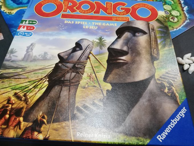 モアイ像の建設「オロンゴ」。中身は握り競りによる陣取り。発売当時はクニツィアの復調が囁かれ、5年前程度なのにもう懐かしさあるのが光陰矢の如し。ゲームを構成する要素が無駄なく繋がった仕組みに魅力ある。握り競りは今的でないけど、長年培われた力量を感じるし、時間も丁度良く楽しい。