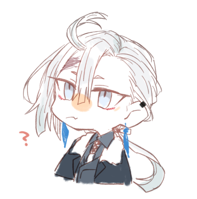 @PCS_TL また目元の赤もピアスも忘れてたから再掲。シュレディンガーの右目側だから傷とかあってもいいんだよな という絵