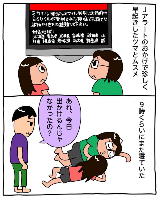 Jアラートのおかげで珍しく早起きしたツマとムスメ #昨日のハイライト