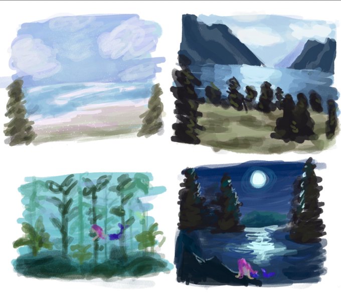 Doing studies of this forest world/lake I am creating. Had too much fun asking colors