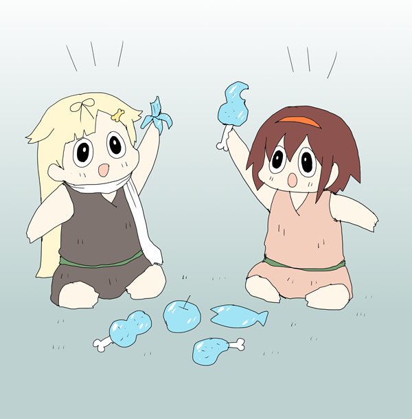 冷凍タベモノを楽しむ白露原人とポイ族の戦士