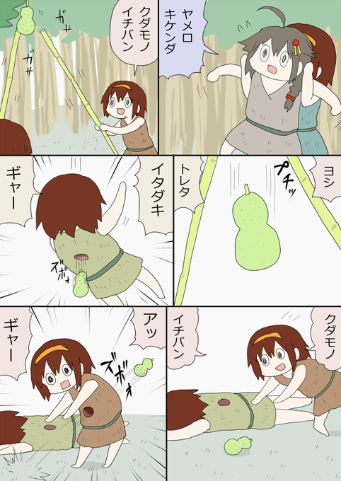 白露原人漫画「農耕民のムラ族とオイモ」 https://t.co/mKUq8WP6ws