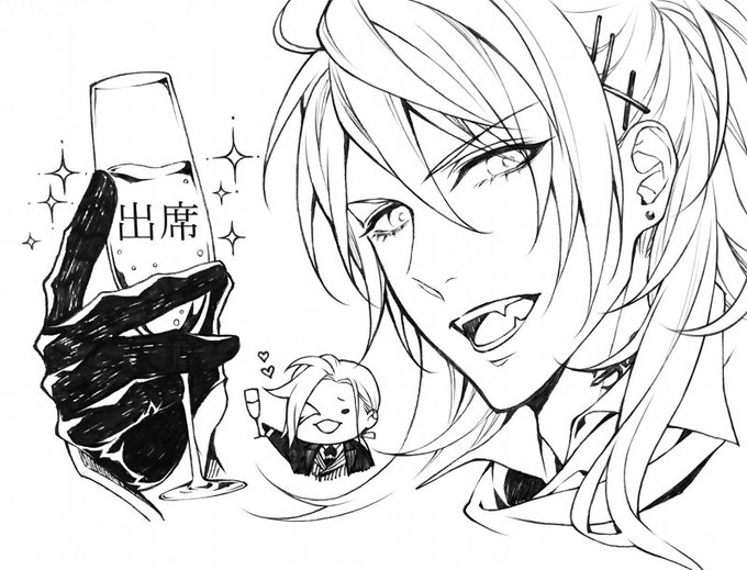 刀剣乱舞謝恩会の出欠葉書に描いた非公式絵。「ご欠席」を絵で消すやつ一度やってみたかった😆