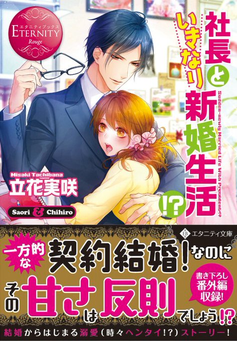 以前装丁イラストを担当させて頂いた単行本がこの度文庫化となりました🎉 アルファポリス様のエタニティ文庫新刊『社長といきなり新婚生活!?』(著:立花実咲先生)。書店等でお見かけしましたら宜しくお願いします😆