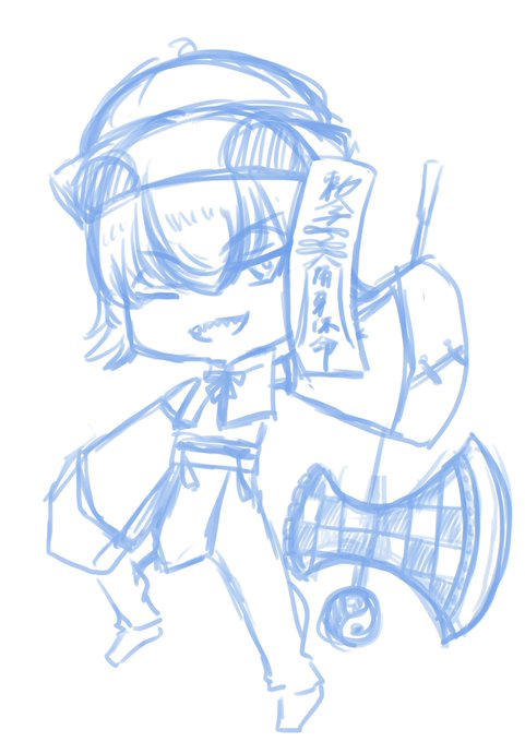 キャラデザはデフォルメから入る。大体ここで頭にあるやりたいことを落とし込んで全体のバランスを見る。ここで気に入りすぎるとこれを超えられなくなって泣く羽目になる。立ち絵にした時微妙に変える場合もあるけど大体この通り。画像はラスラス、棺ラブ、ドロディス、都市伝説課。