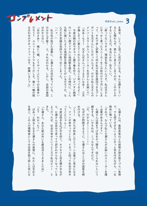 スニーカー👟をテーマに友だちと合同誌(頒布無し・後日全員分まとめてpixivへ再録) を作りました🫶🏻わたしは親愛と信頼のいおりとりくのお話🪢を。画像でもpixivでもお好きな方でどうぞ🐰 --- 【コンプレメント | 朝倉 https://t.co/RqePcKyC1M (1/3)】illustration by めん @sksy5uts