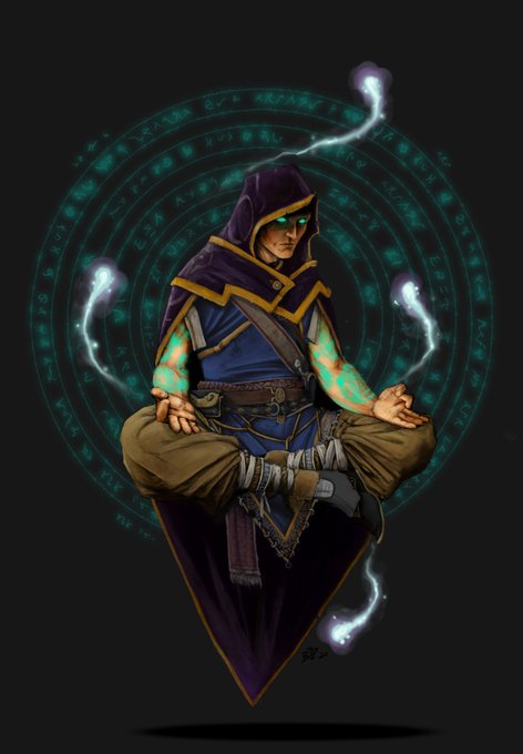 Character illustration commission for my friend @Mythematic. Half monk, half arcane, all cool.