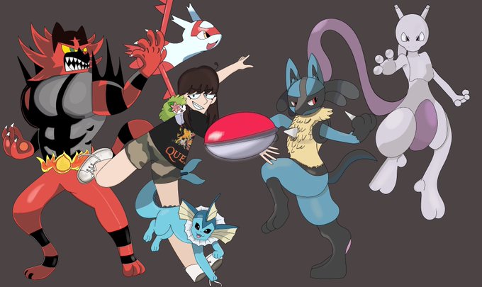 Finally done!! This is a Christmas present for my best friend, I wanted to draw her a team of some of her favorite Pokémon!#Pokemon #artistsontwitter #fanart (๑>◡<๑)