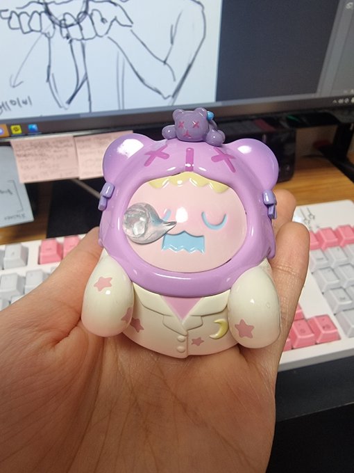 제가 산 신우작가님 고스트 베이비 베어 호텔 아트토이가 짱 귀여워서 낙서했어요 몽유병 환자 친구랑 양을 세는 친구~