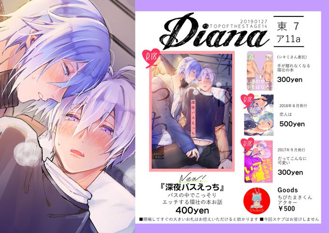 【東4ア-04b Diana】です💙💜既刊の「恋人は」とちびたまアクキーを持っていきます!!
