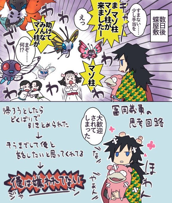 冨岡義勇と相棒のヤドンと竈門炭治郎