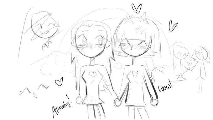 my gf and i didn't know it was girlfriends day on august 1 because we're dumb so we drew these yesterday. super late but reee- ❤