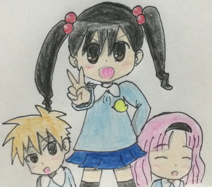今日で『さくらプロージョン』が2周年なので記念に絵を描いてみた❗️去年はさくら博士&もみじだったので委員長&カエルで❗️