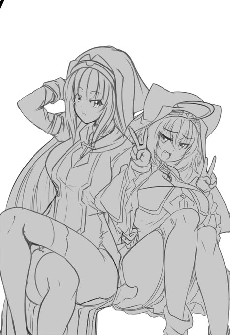 足組みしてるシャルロットちゃんを描きたくてラフを重ねてみた‼‼‼