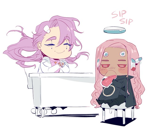 It was @Shindras_ 's birthday the other day so I drew her boy (Green hair) and my boy (Grey hair) bein' cute real quick!