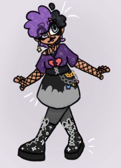 working on a FNAF + Splatoon AU,, that's where the half-ocs are from. Working on trying to figure out Splatoon fashion