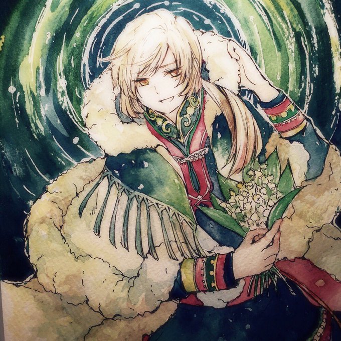 春色宗三さん、目が怖かったので、ハイライト入れました。図録見ながら描いたのですが、色合いとか全身のバランスとか、素敵なデザインですね…
