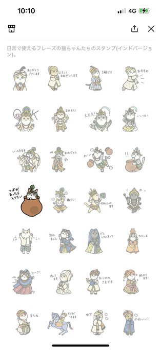 インドがお好きな方はご存知かもしれませんが、#アユミ さん @hiconeeki さんのインド猫ちゃんLINEスタンプ💞↓