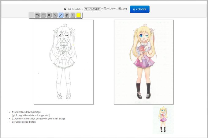 おいらも絵師嬢に了解とって、手元の線画、色指定無しで試してみたら。