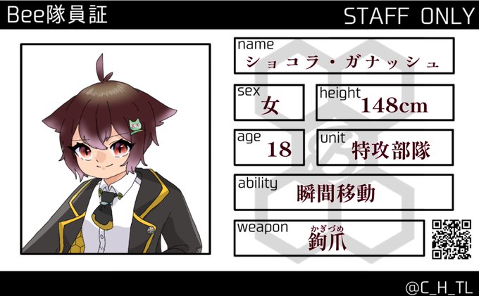 #C_H_CS #C_H_隊員 #C_S_特攻部隊 こちらの企画に(@C_H_TL)ご参加させていただきます🙇♀️ 足の速さと瞬間移動をして戦いますが、基本的にマイペースで寒いの苦手な子です🐱🍫🍓🌿 関係等ほぼまっさらですので是非仲良くしてあげてください。 よろしくお願いいたします🙏
