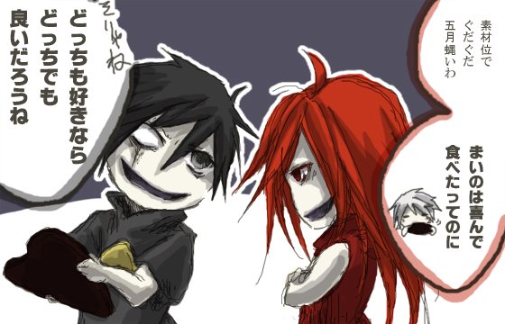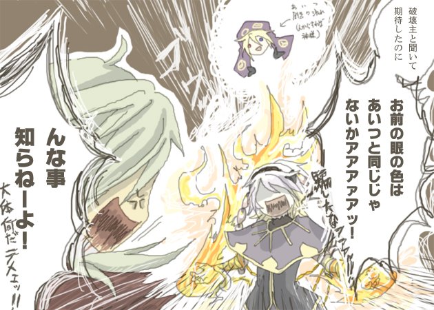 【オマケ】ルイン君は破壊主と聞いて、此方側の領分に破壊のある神様的存在がわくわくして会いに来てみた結果……これはとんだ言い掛かりレベルですね。双方の力量の差は判りませんが、身長は同じ位です。 むおさん、ありがとうございました!